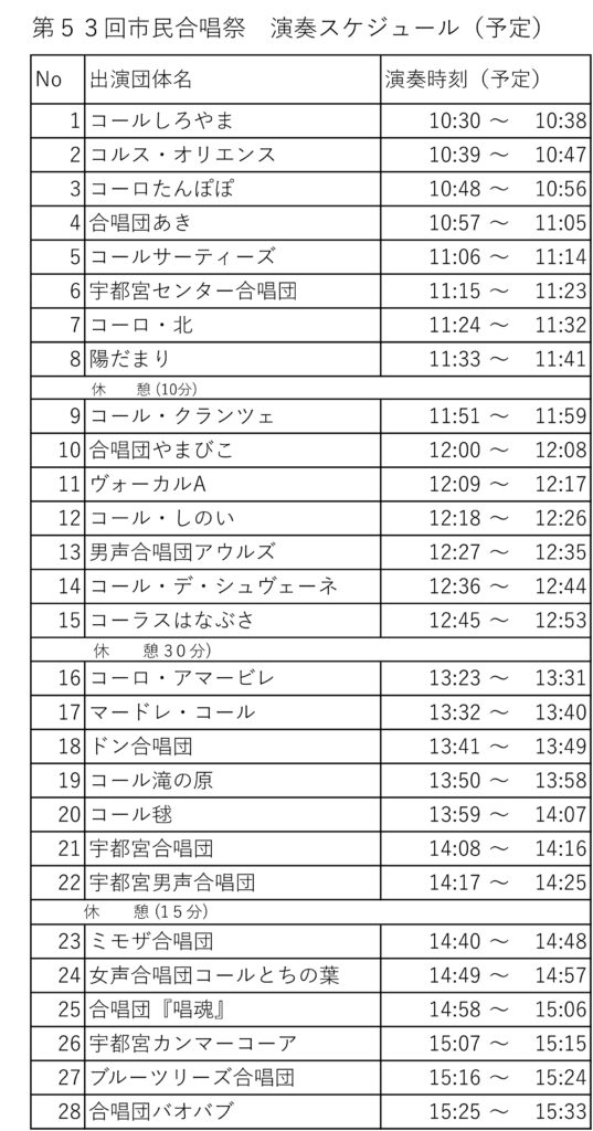 【タイムスケジュール追加】第53回宇都宮市民合唱祭が開催されます。