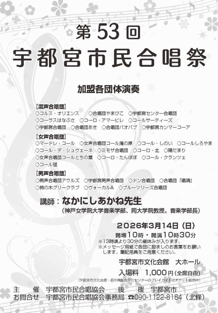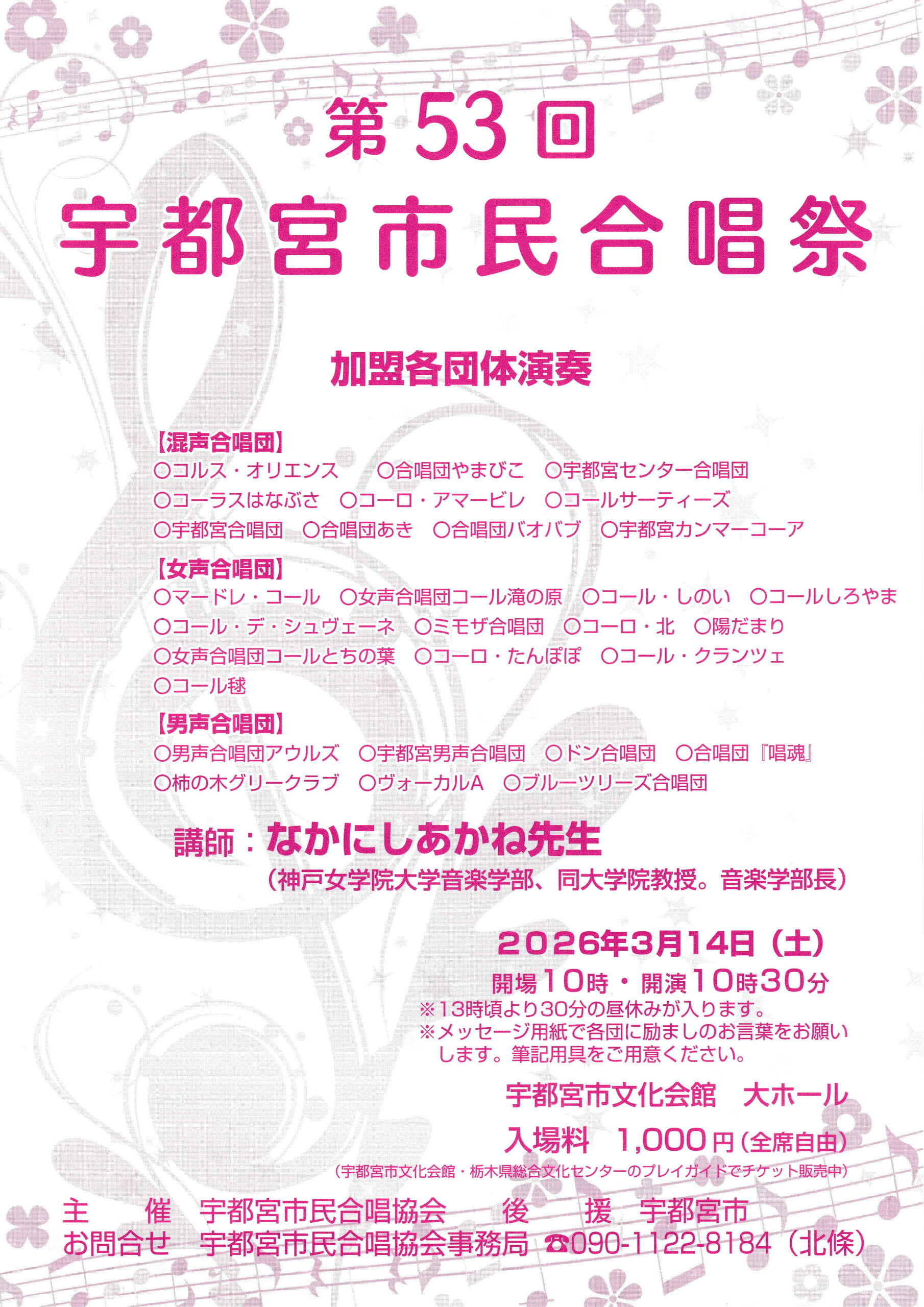 第53回宇都宮市民合唱祭の開催が決定しました。